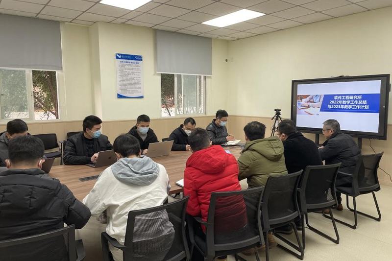 2023年1月6日上午10点,软件工程研究所2022年教学工作总结与2023年教工作计划汇报会,在3教207教室顺利召开,参会的有软件与人工智能学院院长周龙福,软件与人工智能学院副院长廖宁,软件与人工智能学院周勇,软件工程研究所所长唐浩坤,软件工程系系主任黄炜,软件工程研究所副所长胡昇以及软件工程研究所、大数据研究所、人工智能研究所骨干教师。