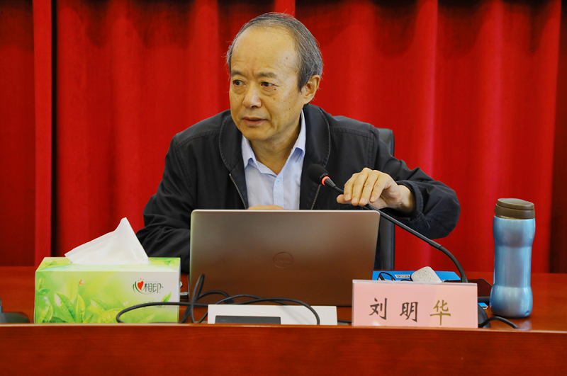 会议第一阶段,学校党委书记谭明术代表学校致辞,介绍了学校及马克思主义学院的建设情况,并希望兄弟高校马院加强教学、科研等各方面的交流学习。刘明华教授的报告首先从谈及中国传统节日、服饰和优秀传统文化之间的关系,其次到文化与科技之间的关系,最后到我国在2035年建设成为文化强国目标的实现与文化的关系,强调文化自信是更基本、更深沉、更持久的力量。此次报告刘明华教授由小及大,更加清晰明了地让参会领导和同行们拓宽、加深了关于文化自信的相关概念。