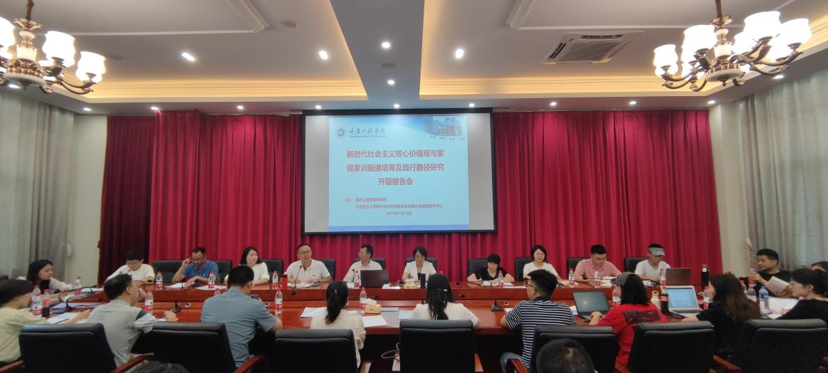 为确保2022年重庆市社科联重点委托项目顺利开展,学校科研处和我院中华优秀传统文化与核心价值观研究中心于7月15日下午14:00在学校行政楼206,一起举办了“新时代社会主义核心价值观与家规家训融通培育及践行路径研究”开题报告会暨主题沙龙活动。报告会特邀西南大学三级教授邹绍清博士作为本次开题报告会评议人,我院中华优秀传统文化与核心价值观研究中心负责人岳精柱教授为本次报告会主持人、主报告人。