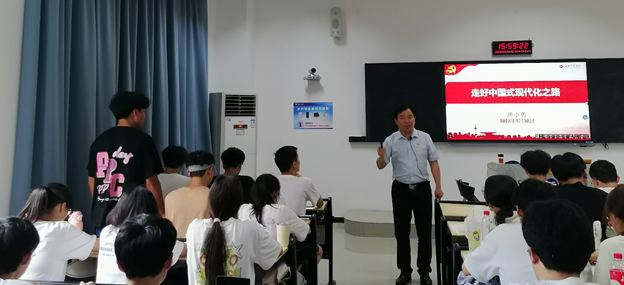 本次课讲授的专题为《走好中国式现代化之路》。唐小勇立足党的十九届六中全会会议精神和党的二十大精神引出中国式现代化主题,再从中国式现代化的艰辛探索、中国式现代化的中国特色、中国式现代化的本质要求、中国式现代化的重大原则四个方面进行了讲授。