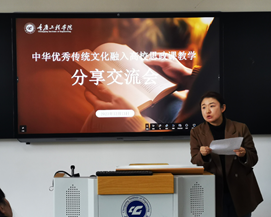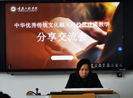 为推进中华优秀传统文化融入思政课教学,提高思政课程的教学效果,12月13日下午,我院在六教开展中华优秀传统文化融入高校思政课教学分享交流会。交流会由学院副院长王巧玲主持,南泉校区思政课专任教师参加。