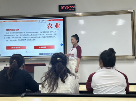 集体备课会首先由吴健敏老师进行第三章的说课展示,吴老师通过说新民主主义革命理论的章节定位与教学目标、教学重难点、学情分析、教学方法、创新特色等内容,将本章内容在教材中的重要地位凸显,并针对整章内容的教学设计进行分享。期间,朱光婷教授针对目前学情提出了一些教学过程中的困惑,比如如何让思政课更有吸引力等问题,老师们展开讨论,安凌老师说要让课堂活起来就需要学生的参与,我们可以丰富互动形式,更让多的让学生思考。除此之外,针对本章内容,岳琦琳老师设计在讲解工业化建设时分享毛主席水调歌头里的一句词,让学生参与课堂。同时,针对本章内容“国家资本主义”这部分,各位老师积极发言,热烈讨论,老师们对这一概念也有了深入的理解。