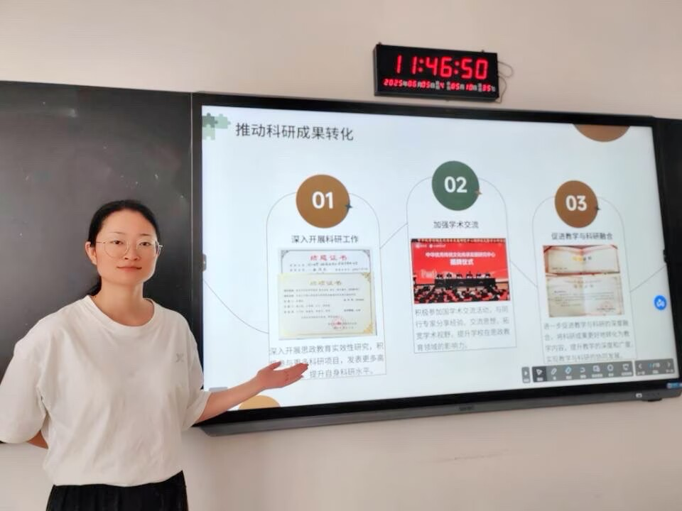 宣讲会上,优秀教师候选人魏云霞、周建武围绕教育教学实践、科学研究、思政育人等方面展开分享。他们结合自身在教学一线的工作经历,讲述了坚守教育初心、创新教学方法、陪伴学生成长的感人故事。既有对课堂教学的精心设计与打磨,也有对学生实践活动的悉心指导;既传递了思政育人的温度,也分享了助力学生成长的路径。他们以朴实的语言、真挚的情感,诠释了 作为思政课教师的使命担当,引发了现场教师的强烈共鸣。