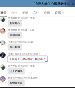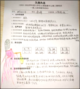 此次培训让心理助教们对自己名字更进一步的认识和理解,对自己有更近一步的了解,同学们纷纷就本次线上团体辅导活动分享自己的收获,本次培训圆满结束。