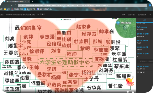 培训开始,大学生心理健康教育与咨询中心的毛玉凤老师通过大风吹小游戏,如姓“陈”、名字中含有“丽”、以及名字是四个字的在评论区评论,以这样的形式来引起培训成员的注意和深思,让他们深刻重视自己、完善自我,更好的接纳自己;将名字与心理学结合起来,从心理学的角度,人的名字中蕴含着的丰富的潜在象征意义;观看央视公益宣传广告《名字篇》后一起分享自己名字的故事,再讨论讨论名字对自己的影响,接着从积极心理学的角度为各自的名字赋能,叙说现自己和同学的幸福故事,从而养成积极、乐观的品德。