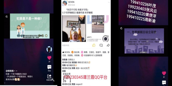 经过该活动下达的通知和心理助教们的积极宣传,本次活动参与人员从制作视频到发布平台集赞再到最后的上交作品,同学们都积极参与,整个活动达到了预期的效果。本次活动一共收集到作品集赞截图480份,并根据集赞数排名选取了20份作品进行评奖,以下为部分同学作品展示。