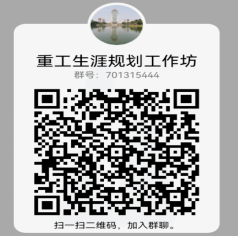报名方式:扫码加入QQ群“重工生涯规划工作坊”(701315444),进群后再具体安排每期工作坊的参与人员。