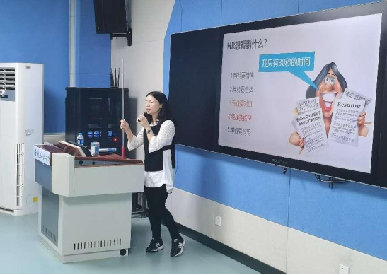 黄老师从求职职位、个人信息、教育背景等七个方面生动形象地介绍了简历撰写技巧。在展示个人信息时,姓名应醒目、居上,出生年月、政治面貌、联系方式等信息应确保准确;简历中的教育背景应有侧重地突出优势,弱化劣势和相关度较低的内容;所附照片应正式、专业,给HR留下较好印象;描述职业能力时,可以用成绩排名等数据体现专业优势,并运用USP法则挖掘实习经历中含金量高的内容等。