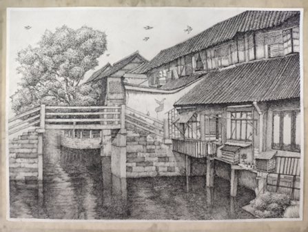 作品简介:贵州西江千户苗寨去旅游时,来到那里,就被深深的震撼到了,这些古建筑依山而建,全木制结构,而且还是以村落制的聚居,令人眼前一亮,也深感古人的伟大智慧,特此到学校图书馆找了一本古建筑的书籍来了解,建筑结构,并想通过绘画技法把它表达出来!展现中华文化的博大精深,地广物博!