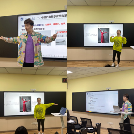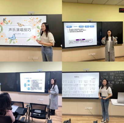 磨课中,老师们就说课和模拟上课两个环节分别进行了展示,展现了不同的授课风格和个人风采。金质纯老师的《魅力朗诵-近现代美文诵读与赏析》为大家展现了诗人顾城朦胧诗的艺术魅力;刘梦莹老师的《北方民族舞蹈表演》和舒昊老师的《中国古典舞表演》碰撞在一起,带给大家不同的舞种体验与民俗文化,理论讲解精彩有趣,技能实操训练有素;声乐老师安琪和郭宁红分别带来《萱草花》和《往日时光》演唱教学,教授正确的发声开嗓、呼吸和情感的运用技巧,两位老师积极展开教学并带动现场观摩的老师一起互动交流,呈现了两堂风格各异而又生动有趣的声乐课。