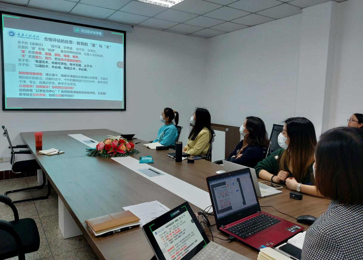 会上,各教研室对4月工作进行总结,并提出了5月工作计划。主任助理卢颖对其中教学检查材料清单进行了说明,宣布了课程思政教学示范月活动的安排。会上,职业发展与就业指导教研室主任黄梅汇报了校级课程思政建设项目《大学生职业发展与就业指导》的设计理念、思政设计、教学反思。随后,职业能力发展研究中心进行相关工作安排。常务副主任邹春霞强调5月重点工作。
