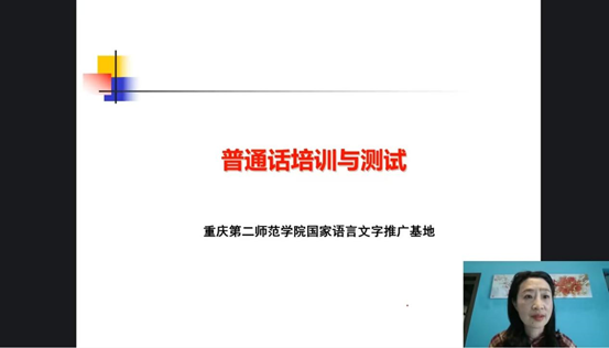 本网讯(图/文 大学生素质教育中心)2023年4月26日下午,重庆第二师范学院副教授、国家级语言文字督学、国家级普通话水平测试员、重庆第二师范学院国家语言文字推广基地办公室副主任杨涛教授在小鹅通上开展了题为“普通话培训与测试”的主题讲座。