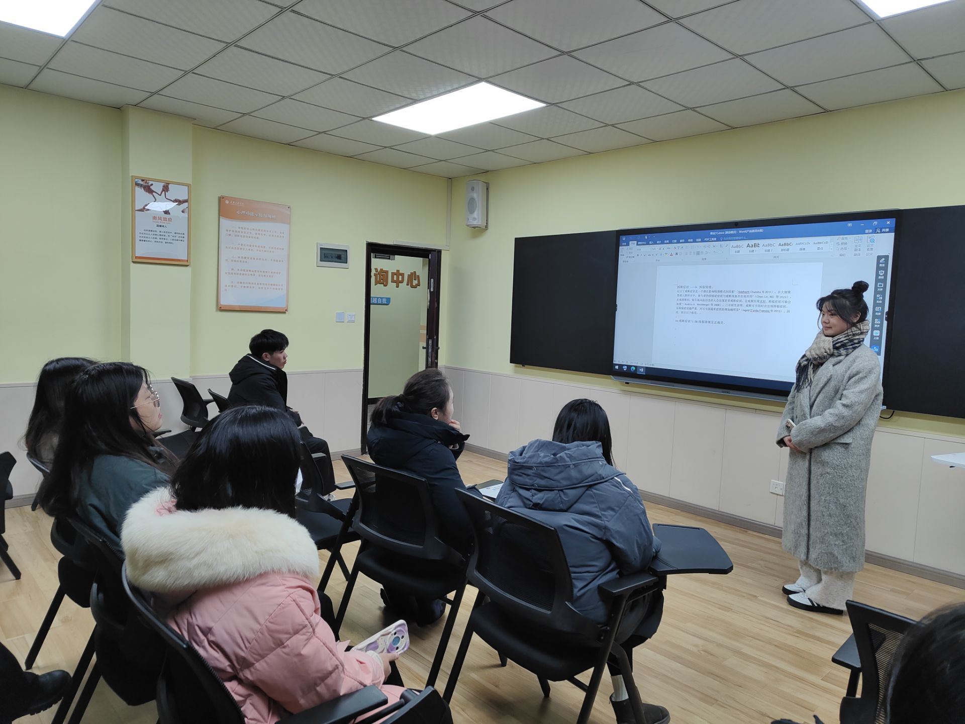 黄小兰同学就考公考研不给专硕学生机会,考研推免名额增多,出国留学旅客能增加等问题做出了讨论,并作出自我分析和理解,其余学生助理也对其进行提问、回答、讨论。夏冬梅老师就这个点也提出了“竞争压力大,就业难度大,可以从扩招方面入手”等观点。