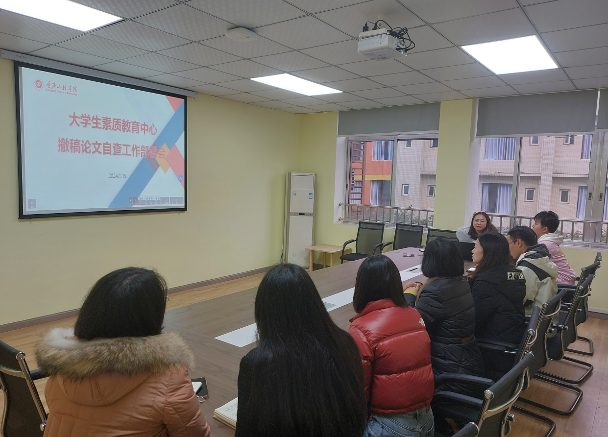 为全面落实上级部门及学校加强科研诚信制度建设的要求,2024年1月16日,大学生素质教育中心在大学生服务中心314召开撤稿论文自查工作部署会。会议由夏冬梅主持,全体教师参会。