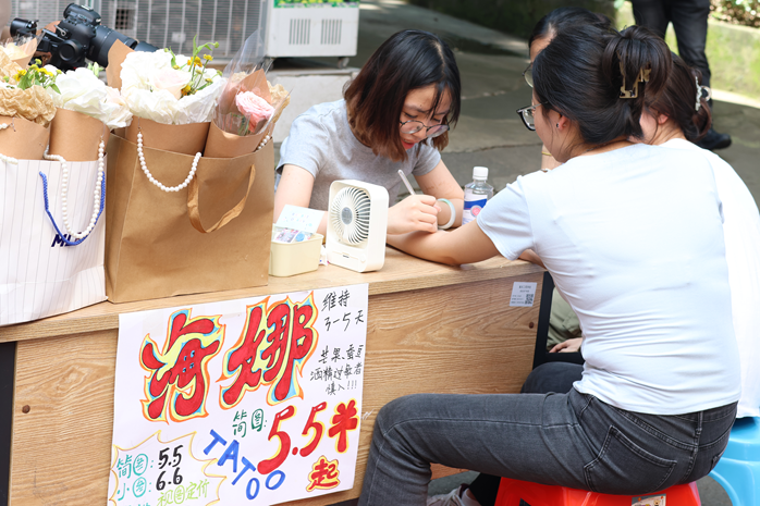 为了顺利举办本次活动,主办方前期筹备已久,先是线下招募有强烈意愿的摊主,然后严格统一规范报名流程,最后通过材料审核的摊主就能到现场进行展示,最终确定有37个摊主符合本次活动的条件,成功申领了摊位。本次展品十分丰富,有爱好手工的摊主现场展示了自己的作品,如头饰、相框、挂件等,还提供现场定制服务;也有摊主展示了自己的手绘特长,现场开启了人体彩绘;也有摊主将自己的爱豆卡片放到现场展示,致力于寻找自己的“归属感”。同学们下课路过,看到校园主干道边上这些 “心晴”展品,真真切切体会了一把“心晴”,情绪价值拉满,对此活动纷纷竖起了大拇指。也有同学反映,希望这样的集市能够多多举办,因为这不仅能为同学们提供情绪价值,还提供了一个展示大学生们积极生活的平台,逛集市不知不觉心情也变得明朗起来。据悉,以后学生处将定期推出类似活动,不断丰富同学们的校园生活。