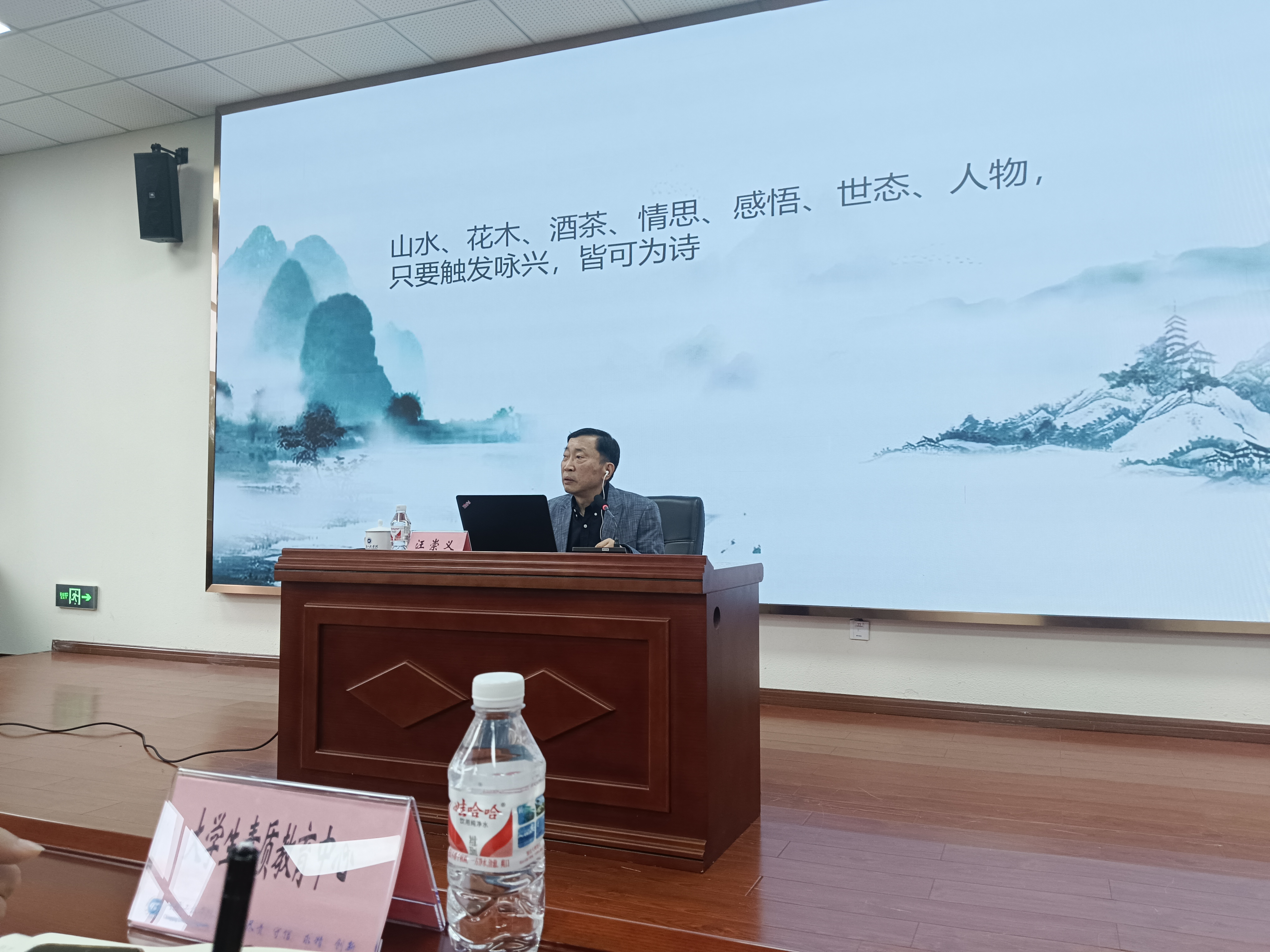 在讲座中,汪崇义先生以其独特的视角和见解,深入探讨了诗词的鉴赏与创作。他首先回顾了中国诗词的悠久历史和丰富传统,强调了诗词在中华文化中的重要地位。汪先生提到,诗词不仅是文学的一种表现形式,更是一种精神的寄托和情感的抒发。他以自己的创作实践为例,分享了如何在现代生活中汲取灵感,创作出既符合传统格律又具有时代气息的诗词作品。
