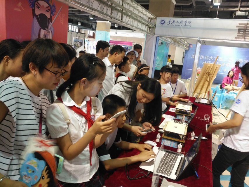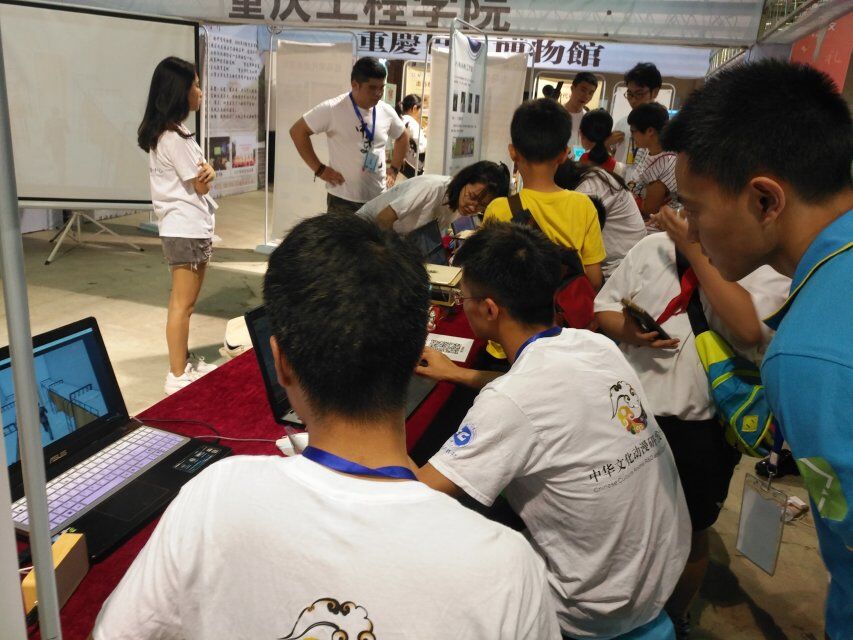 重庆工程学院携带师生研发作品向广大市民宣传中华优秀传统文化和计算机深蓝文化,展示了国学启蒙教育系列动画短片《训蒙学堂》、川渝地区传统民居结构数字表现、重庆火凤凰等文化类创意产品。《火场逃生》《快乐校园》《细菌大扫除》等数款科普体验类游戏获广大学生及市民的追捧。