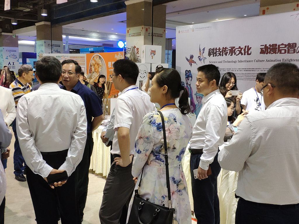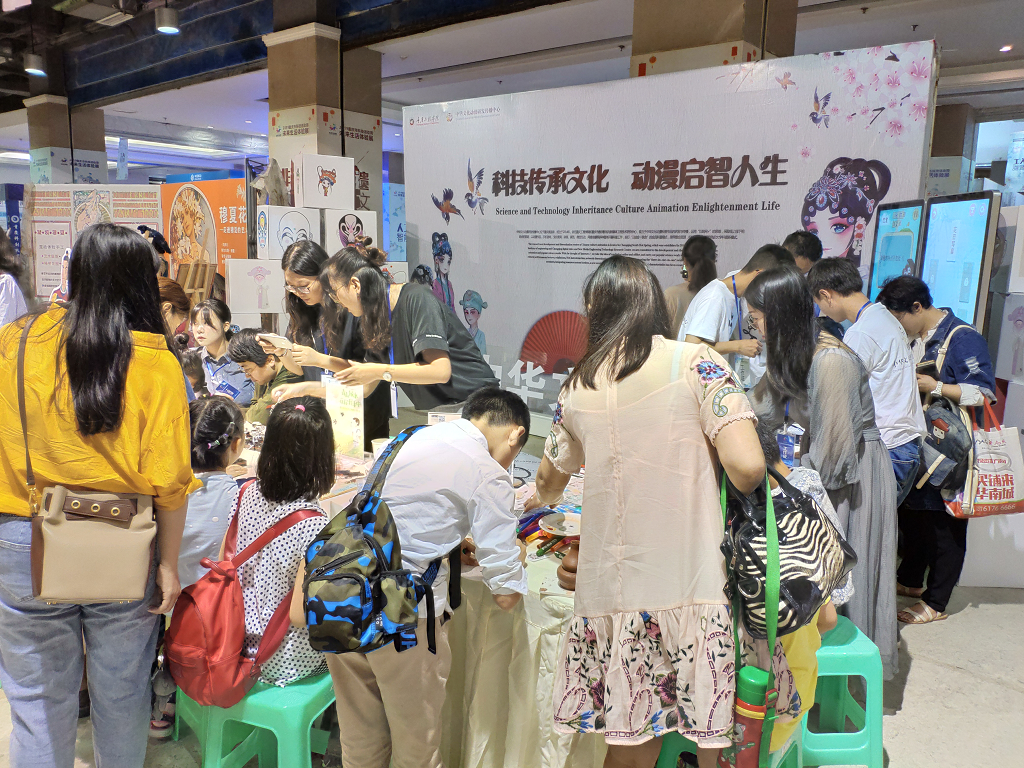 “科技传承文化,动漫启智人生”系列活动的核心是用现代科技传承传统文化。一是通过数字动画的表现形式来传播中国传统文化汉字的演变过程,用视频观看和游戏APP互动使青少年更加直观的了解中国汉字的演变和传承,共展示了《生旦净末丑》、《加油,唐七七》、《渝跃》三款我校自主开发的动漫互动游戏;二是传统文化制作书签、卡通动画描摹体验,在互动活动过程中穿插非遗文创产品展示和赠送活动,吸引观众的到来。