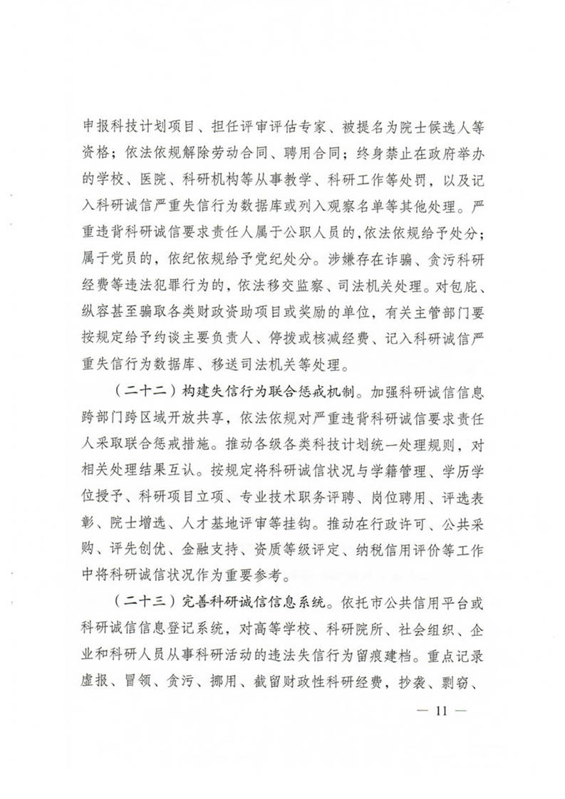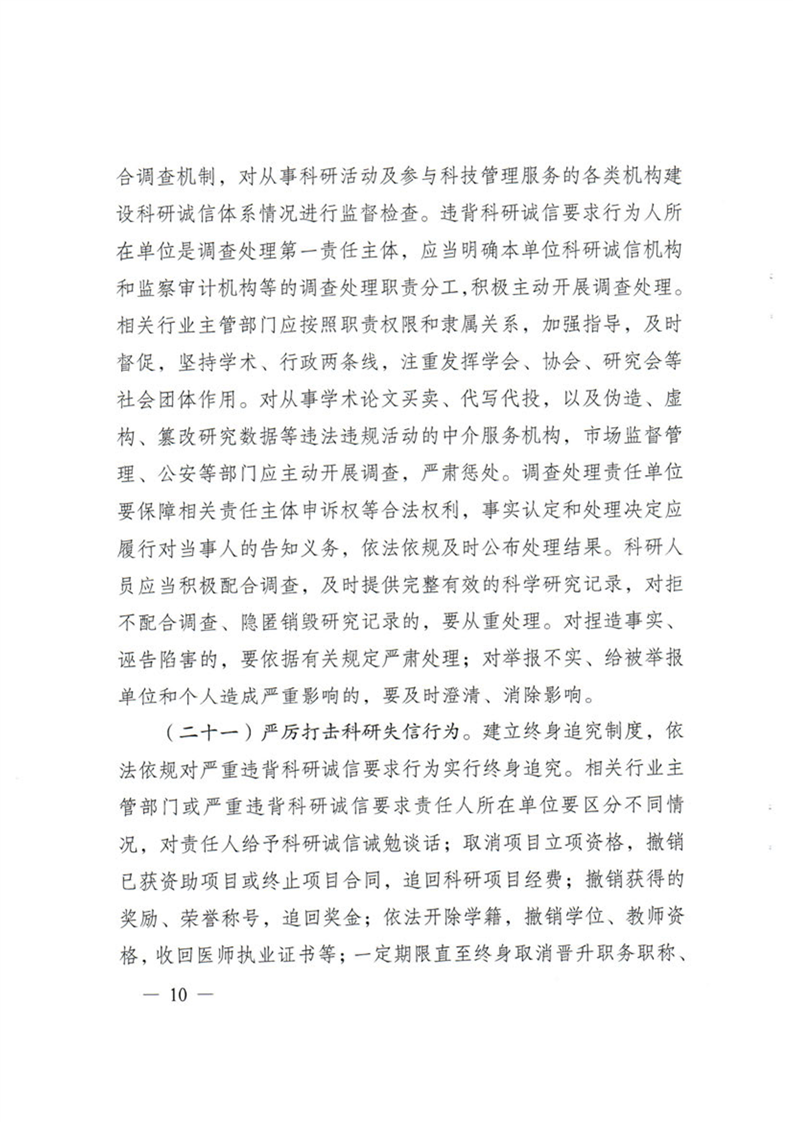 关于印发《关于进一步加强科研诚信建设的 实施意见》的通知