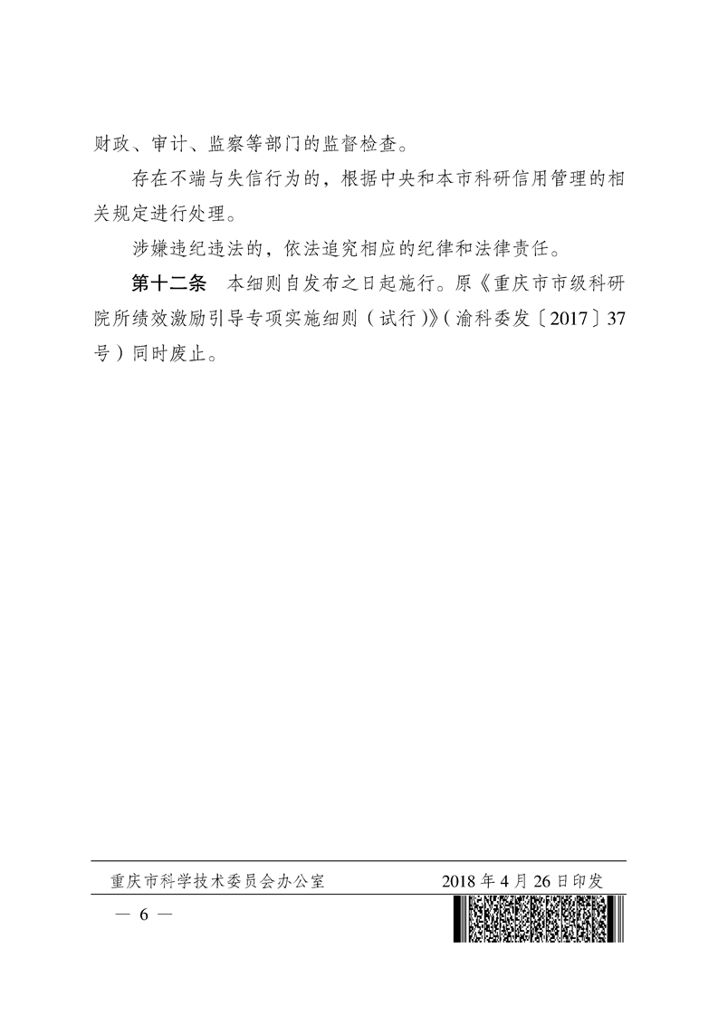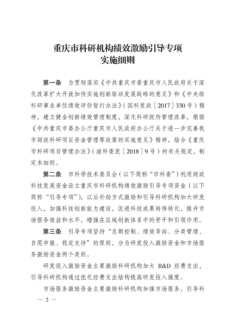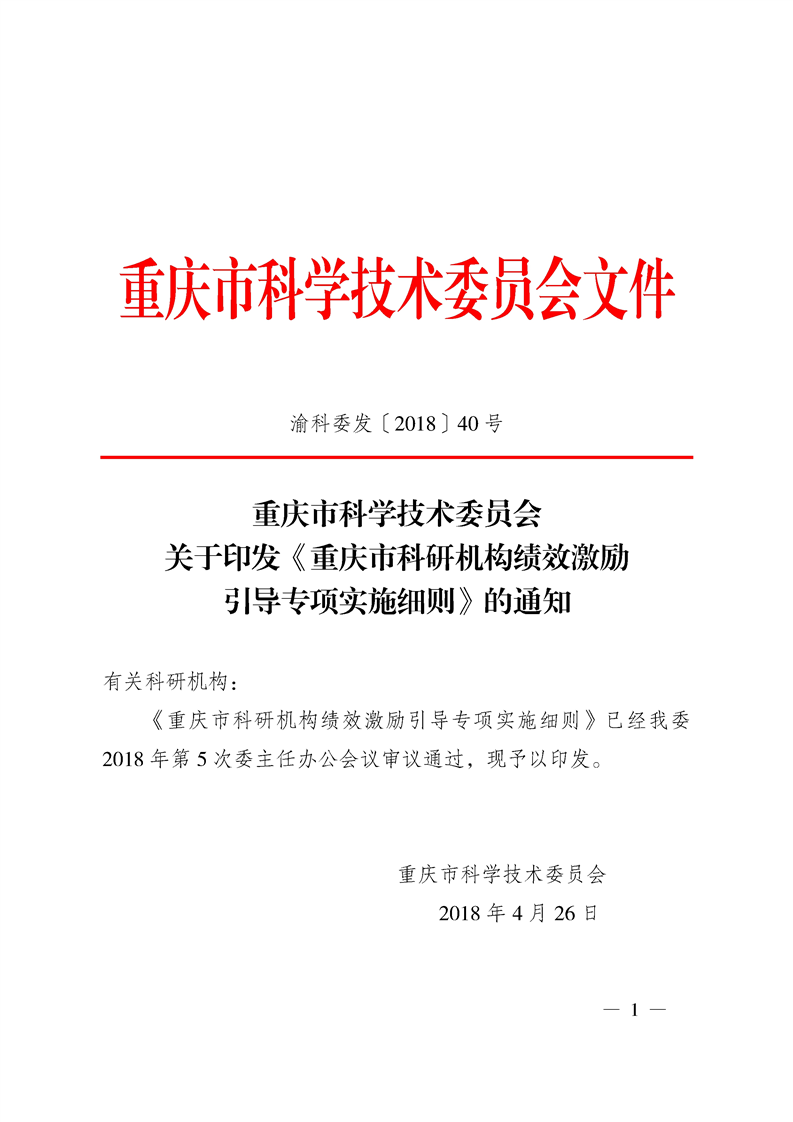 重庆市科学技术委员会关于印发《重庆市科研机构绩效激励引导专项实施细则》的通知