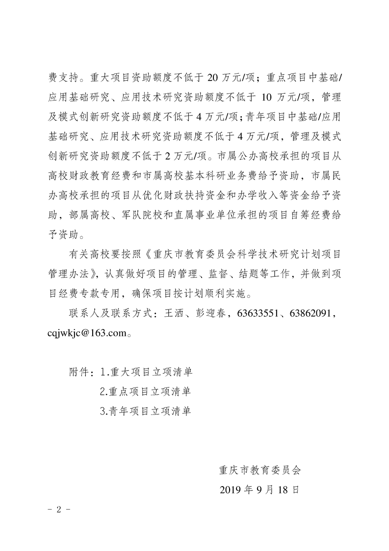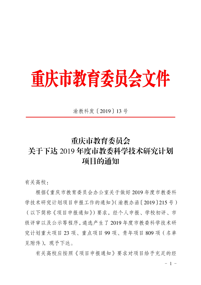 关于下达2019年度市教委科学技术研究计划项目立项的通知