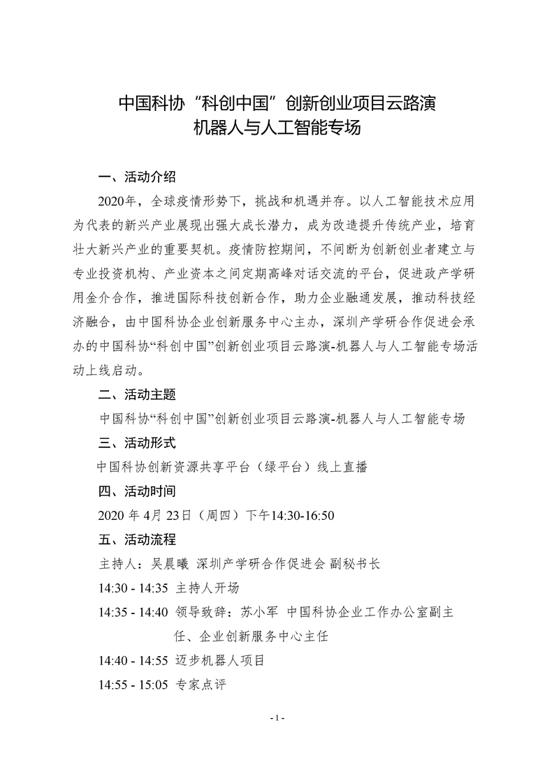 中国科协“科创中国”创新创业项目云路演机器人与人工智能专场
