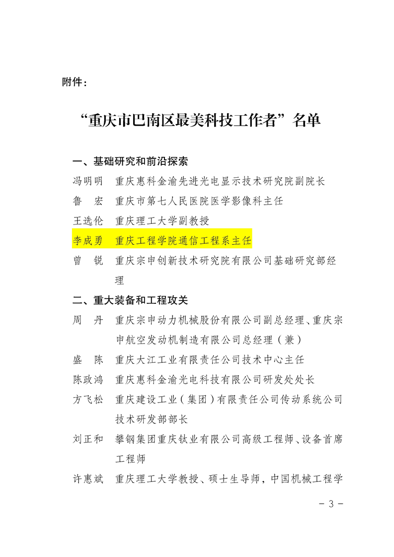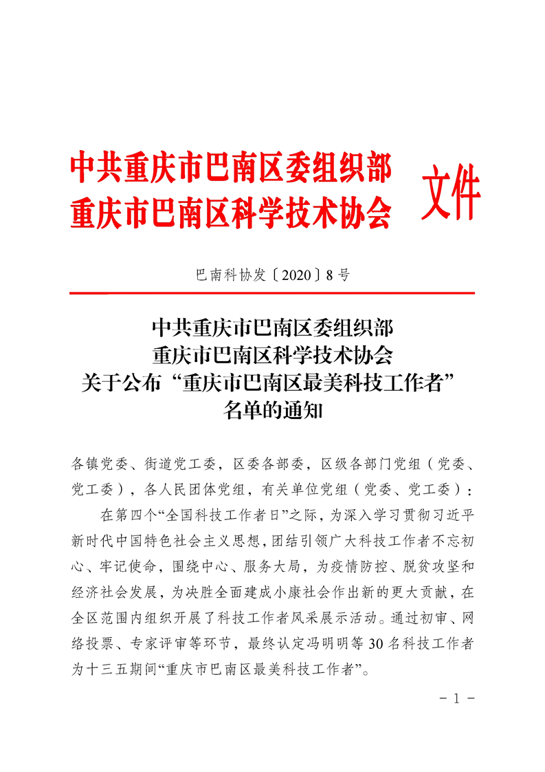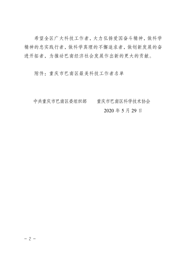 关于公布“重庆市巴南区最美科技工作者” 名单的通知