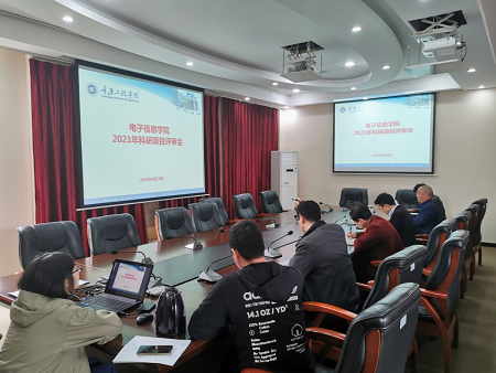 (本网讯 图/文 电子信息学院)2021年4月26日上午11:00,电子信息学院在第七会议室召开科研项目评审会,对我院申报的巴南区科技局科技成果转化及产业化项目进行评审,学院学术分委员会委员以及各项目负责人参加了本次评审,会议由副院长陈成瑞主持。