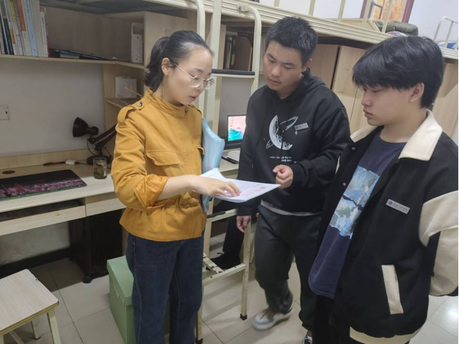 各位老师走访自己学生的寝室,细致入微的询问同学的疑问与难题,并将入党申请书的书写格式、要求等作为重点给同学们强调。针对同学们的不同问题,各老师耐心解答。主要解答了撰写入党申请书前要做什么?申请入党的要求及要注意问题、入党申请书格式要求等一些列问题。