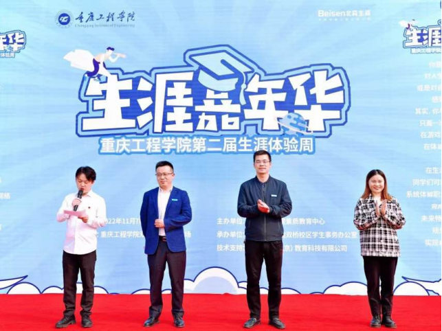 本网讯(文/图 双桥校区记者团)为进一步激发学生生涯规划意识,使广大学生更加充分地了解职业生涯规划教育的重要内涵和意义,重庆工程学院第二届生涯体验周“北森生涯嘉年华”活动启动仪式于2022年11月7日在双桥校区成功举行。