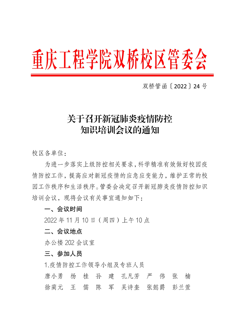 > 关于召开新冠肺炎疫情防控 知识培训会议的通知