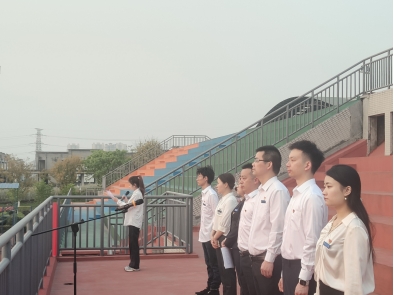国旗护卫队全体出旗,伴随着国旗的缓缓上升,同学们以庄严的精神面貌在国旗下高唱国歌。马克思主义学院兼职辅导员唐艳老师,对同学们在课堂、在宿舍、在日常学习上应该如何付诸行动提出了要求。