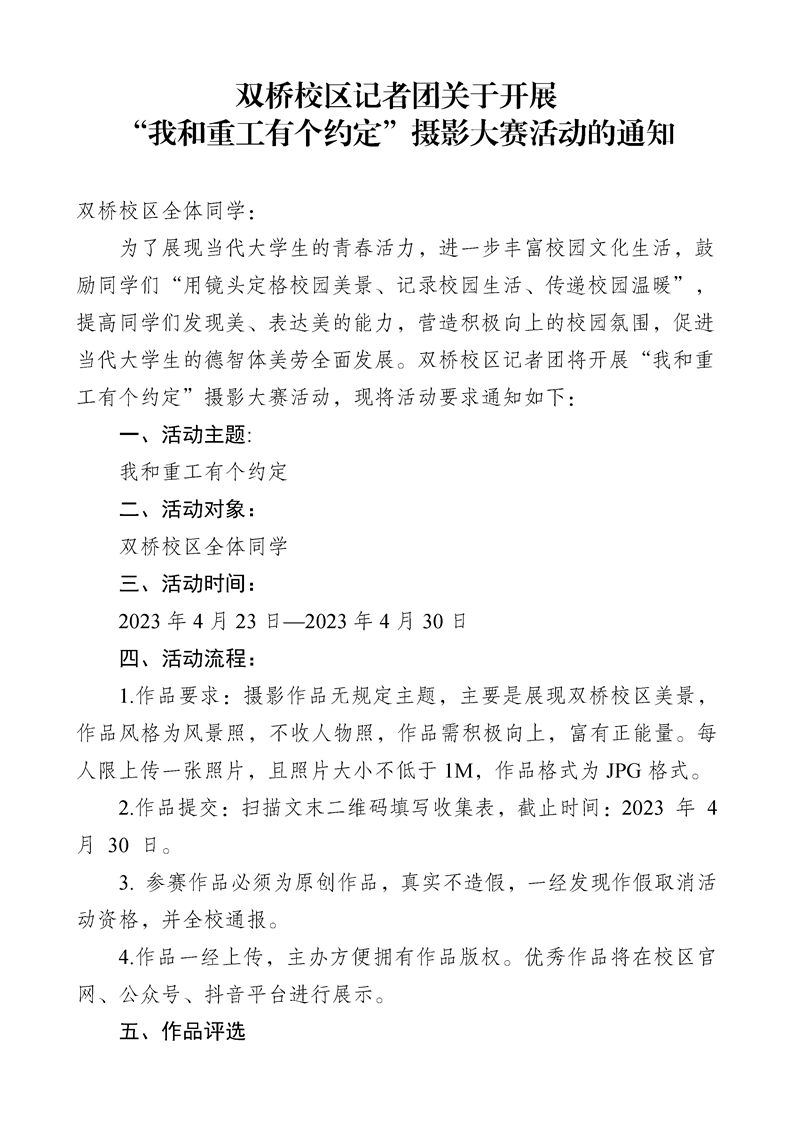 双桥校区记者团关于开展 “我和重工有个约定”摄影大赛活动的通知