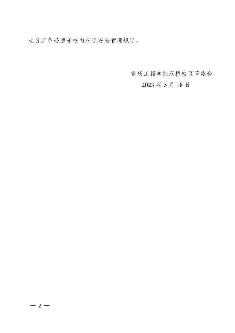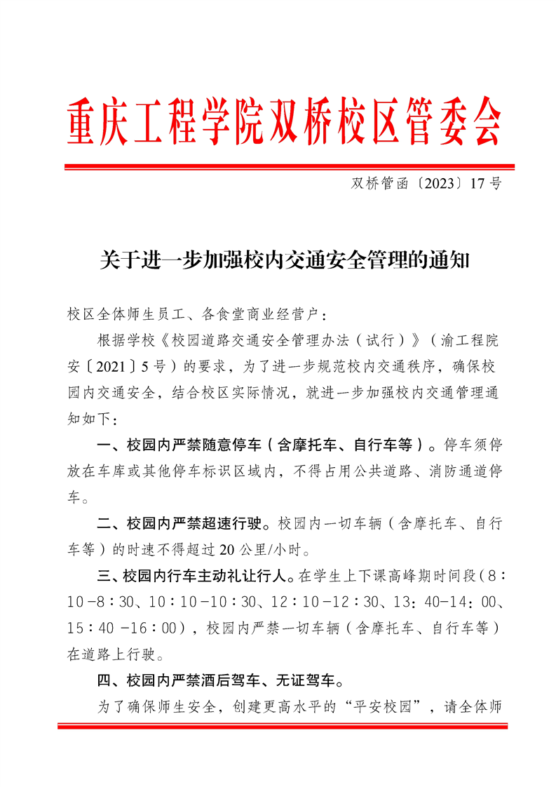重庆工程学院双桥校区关于进一步加强校内交通安全管理的通知