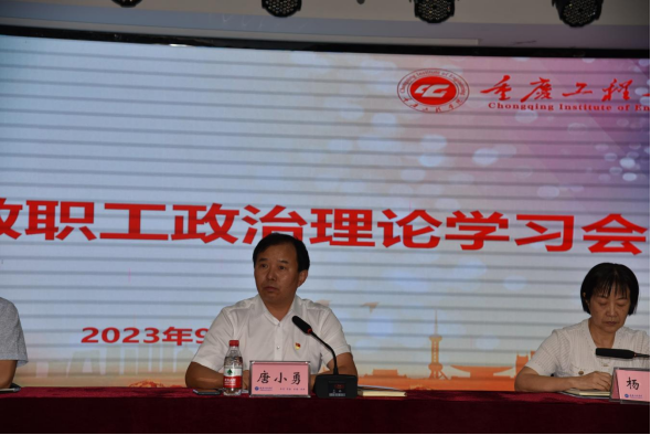 本网讯(文/图 双桥校区吕颖莉)为贯彻落实党的二十大精神和重庆市委六届三次全会、大足区委三届六次全会精神,加强党建统领,全面提高党的领导力组织力,以高质量党建引领学校高质量发展,9月5日下午,双桥校区举行了教职工政治理论学习会议。校党委副书记、双桥校区党工委书记唐小勇,学校副校长、双桥校区管委会主任杨桂,双桥校区全体教职工参加会议。