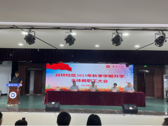 本次2023年秋季学期开学全体教职工大会既是开学调整状态的收心会,也是安排部署工作的推进会,更是为全体教职员工加油鼓劲、加压冲刺的动员会,为新学期校区各项工作的顺利开展奠定了良好基础。