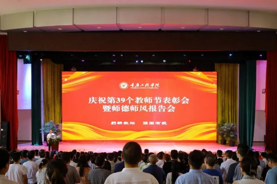 三尺讲台谱芳华,四季耕耘育桃李。在第39个教师节来临之际,为弘扬尊师重教风尚,进一步激励全体教职工坚持立德树人使命,争做党和人民满意的“四有”好老师和“四个引路人”,9月6日下午,我校在南泉校区学术报告厅隆重举行庆祝第39个教师节表彰大会暨师德师风报告会。本次大会以“躬耕教坛,强国有我”为主题。