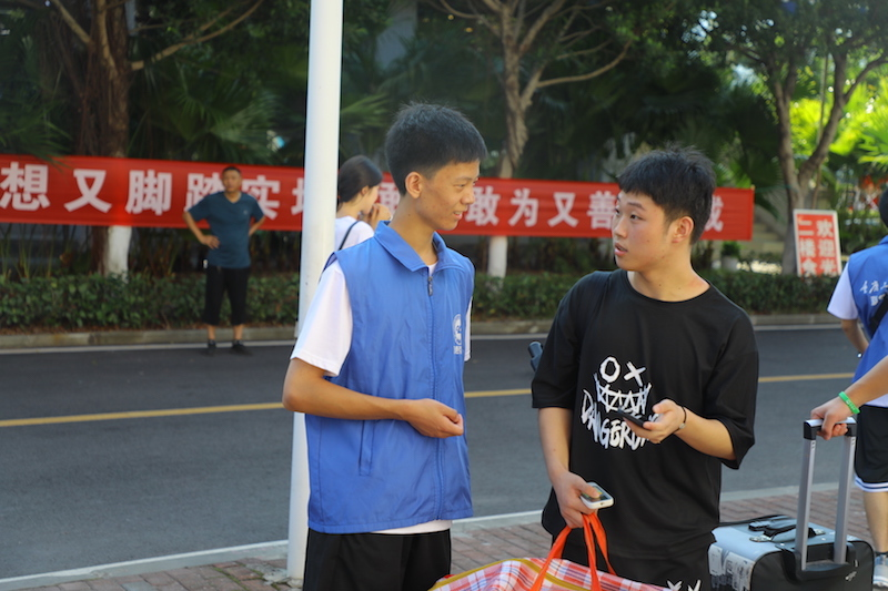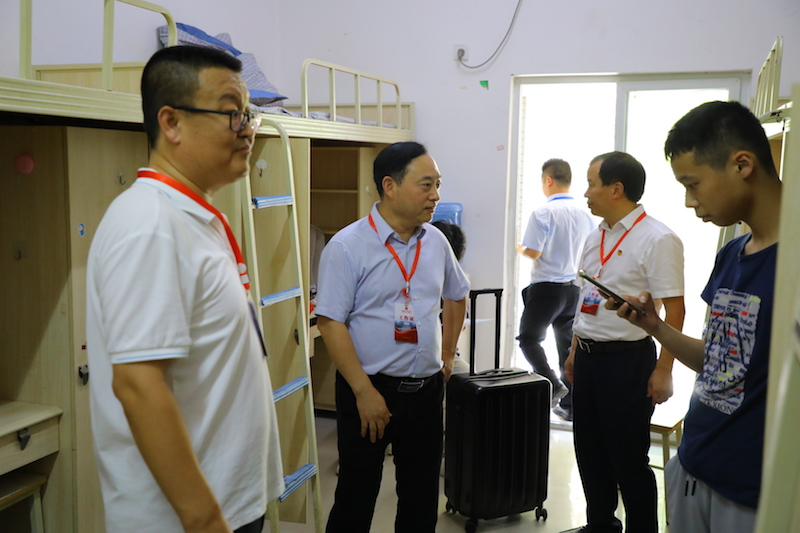 校领导一行还慰问了工作人员与志愿者们,详细询问了新生报到、学生住宿、迎新安排等工作进展情况,嘱咐做好学生服务及开学相关工作,并对辛勤忙碌的工作人员和志愿者们表示感谢。