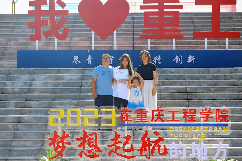“今天上午报到,各个环节都非常顺利,我们也感受到了学校对新生的细致和热情。”来自重庆涪陵郑皓月的家人们正在“我爱重工”迎新展板前合影。她的爸爸、妈妈、妹妹一齐出动来送她上学。“校园环境非常好,我们全家都很满意”。