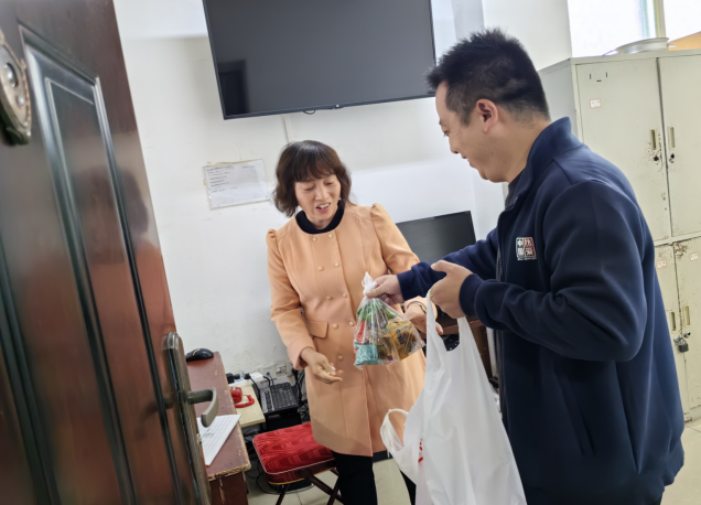 本网讯(文/图 方爽)2023年9月29日下午12:00,双桥校区学生事务办公室主任孙建,带着值班老师,到校园各个岗位查看询问假期学生出入情况及状态,并带去了节日慰问。