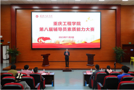 本网讯(文/学生处 李鹏 图/大学生记者团 廖颖姗)为加强辅导员队伍建设,推动学生思想政治工作高质量发展。11月3日,学校在7807报告厅举办重庆工程学院第八届辅导员素质能力大赛决赛。特邀重庆师范大学学生处处长胡小强、重庆理工大学学生处副处长卢鹏、重庆工程学院学生处处长黄燕、大学生素质教育中心夏冬梅、心理健康教育与咨询中心郭晓伟担任本次大赛评委,各二级学院书记、学生科长及全体辅导员应邀在场观摩。