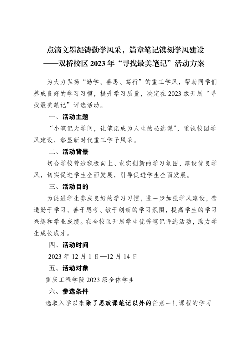 > 双桥校区2023年“寻找最美笔记”活动方案