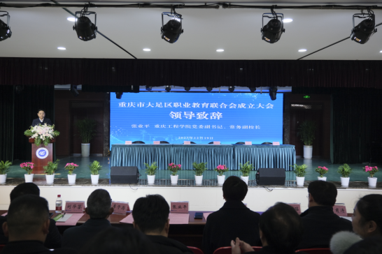 本网讯(文/刘加 图/吕颖莉 )为实现资源共享、信息互通、技术共研、人才共育、互利共赢。12月19日,重庆市大足区职业教育联合会成立大会在重庆工程学院双桥校区召开。大足区委教育工委委员、区教委副主任易兰出席会议并发表讲话。来自大足区教委高校服务中心、职成科的主要领导,大足区6所职业院校的主要领导和分管教学、学生工作的领导,以及思政课教师代表、重庆工程学院师生代表等600余人参加成立大会。会议由重庆工程学院党委副书记、双桥校区党工委书记唐小勇主持。
