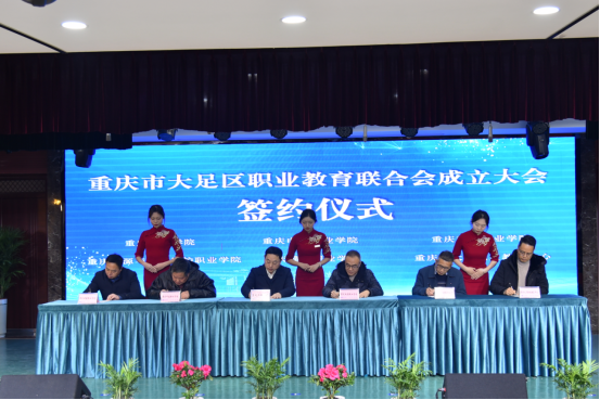 会议第二项议程由联合会成员单位代表签订《重庆市大足区职业教育联合会协同发展协议书》。
