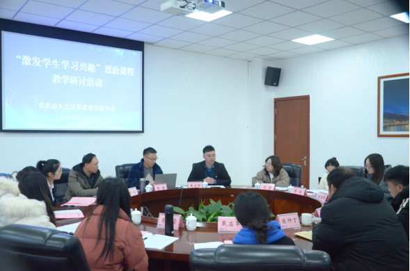 本网讯(文/张成林 图/吕颖莉 )为落实思政课立德树人的根本任务,提高思想政治理论课程育人实效,12月19日下午,大足区职业教育联合会“激发学生学习兴趣”思政课程教学研讨活动在我校双桥校区成功举办。来自重庆工程学院、重庆电信职业学院、重庆科技职业学院、重庆资源与环境保护职业学院、重庆健康职业学院、重庆市大足职业教育中心的20余名思政教师参加此次研讨活动。