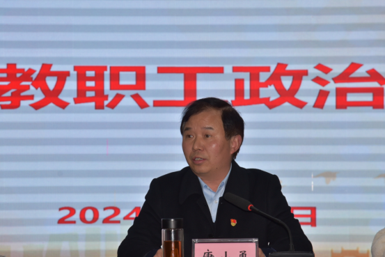 此次2023-2024学年春季学期开学全体教职工大会既是开学调整状态的收心会,也是安排部署工作的推进会,更是为全体教职员工加油鼓劲、加压冲刺的动员会,为新学期校区各项工作的顺利开展奠定了良好基础。海阔凭鱼跃,天高任鸟飞,2024年双桥校区全体教职工将在学校坚强领导下,秉承“攻坚克难、无私奉献”的精神,强化理论武装,践行四制工作准则,立足岗位、守正创新、真抓实干,为建设特色鲜明的工程技术大学而奋斗。