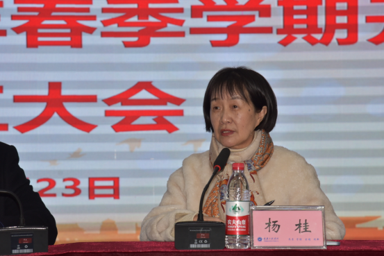 会议伊始,杨桂副校长结合学校2024年工作总体要求,就双桥校区教学工作进行安排部署。首先,传达学习了学校最近两次干部大会上王万均校长的讲话精神,通报了学校二级单位的变化调整,并对2023年双桥校区教学成绩进行了总结。其次从四个方面对2024年双桥校区教学工作作出部署:一是以学校“1234”工作体系为思路,全面推进教学改革,重点在教学案例化、信息化技术应用上下功夫,并积极开展线上线下相结合、优质课程资源有效利用等灵活性的教学内容整合、教学方法创新;二是在学校深入推进校企融合、产教融合工作中,结合专业人才培养需求,做好本课程教学中应用能力、学习能力,调整优化课程教学大纲;三是积极配合学校开展多元化人才培养、社会培训;四是加强教师队伍建设;专兼教师并举、线上线下齐发,培养培训协同。基础学院、马克思主义学院要在OBE教学理念、教学设计、教学组织、教学方法等开展培养培训,进一步优化课程、课堂教学等考核评价指标体系,不断推动教师能力提升;五是推进实施校区阳光工程,塑造积极向上学术氛围、宽松和谐的工作氛围;六是充分利用大足高校联盟平台,搭建区级教改、科研平台,提升广大教职工科学研究能力,提升学校服务地方能力。