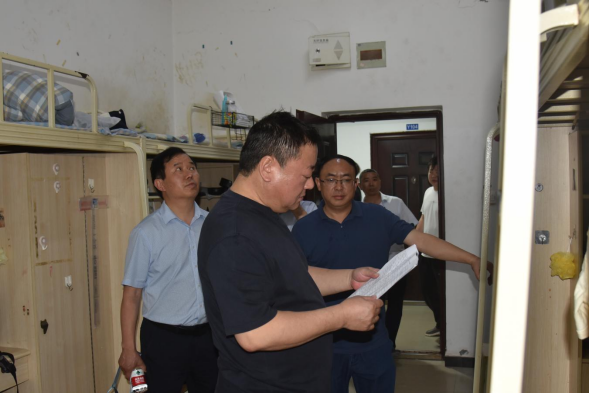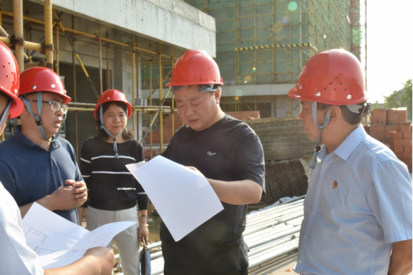 在考察过程中,李德志副理事长一行详细了解了扩建工程的进展情况,他们先后来到施工现场,仔细查看了学生宿舍、教学楼等新建项目的建设情况,并与施工单位、监理单位负责人进行了深入交流。李德志副理事长对施工单位在确保工程质量和安全的前提下,加快施工进度表示赞赏,并希望他们继续发扬攻坚克难的精神,确保工程按时按质完工。随后,李德志副理事长一行还深入明义楼、明信楼等,对学生宿舍升级改造提出了明确要求。
