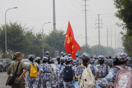 9月26日上午7:00,唐小勇宣布拉练开始。随后,全体新生在教官的带领下开展拉练,从双桥校区东门出发,步行前往龙景湖,绕湖半圈再返回学校。拉练里程约10公里,时长约为2个小时。在拉练过程中,军训团还组织学生开展了应急演练,模拟空袭、轰炸等场景,让学生们不仅掌握了基本的军事技能,还增强了国防意识和安全意识。值得一提的是,为保障军训拉练工作顺利进行,学校在拉练过程中设置了2个补给点,每个补给点配备救护车、医护人员、充足的水源和应急干粮等。