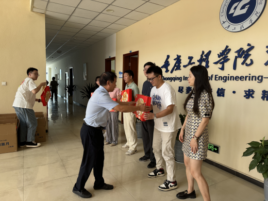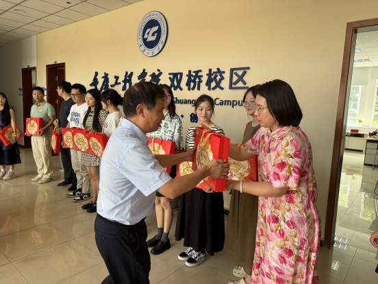 本网讯(文/图 吕颖莉)为弘扬中华传统文化,增强教职工之间的凝聚力,9月17日,双桥校区管委会分工会精心策划并组织了中秋佳节送月饼活动,校党委副书记、双桥续校区管委会主任唐小勇亲自为校区教职工送上节日的温暖与祝福。